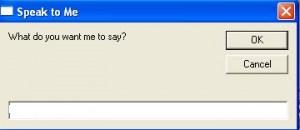 message=InputBox(“What do you want me to say?”,”Speak to Me”)Set sapi=CreateObject(“sapi.spvoice”)